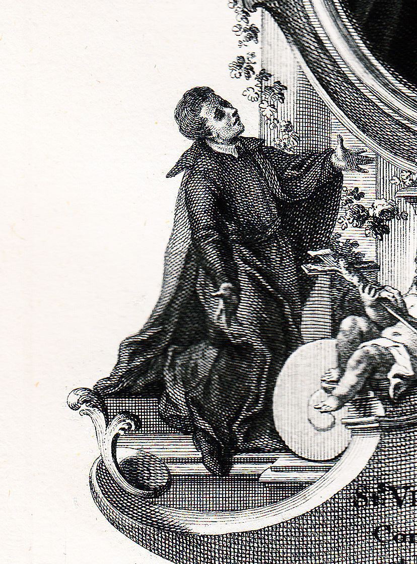 About 1730, Spain Engraved in Barcelona No hat, skullcap, shoes, tonsure evident Tied cincture