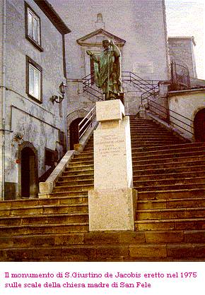 Text: the monument of St. Justin de Jacobis, erected in 1975 on the staircase of the mother church of San Fele. (Birthplace of the saint).