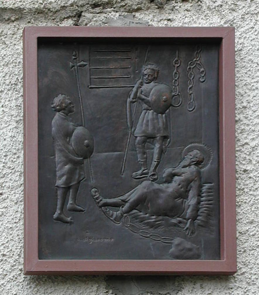 St. Justin in prison; bronze plaque, St. Fele