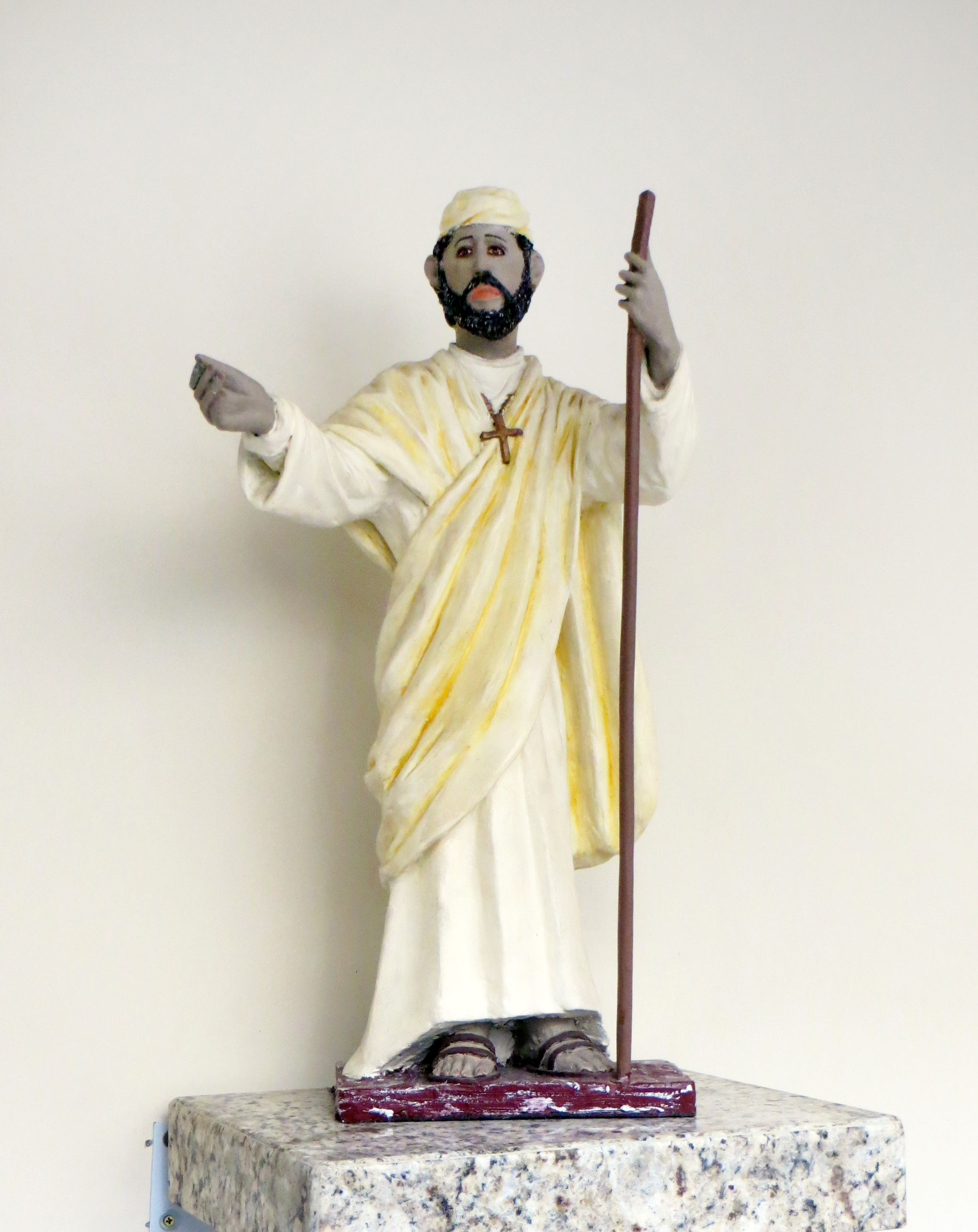 Original in Seminario Vicentino, Belo Horizonte, Brazil; shown with dark skin, dressed as Ethiopian monk (but with pectoral cross)