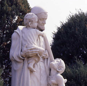 Marble statue, Vincent de Paul (detail), with child in his arms and handicapped child. Original in Sisters of Charity motherhouse, Suwon