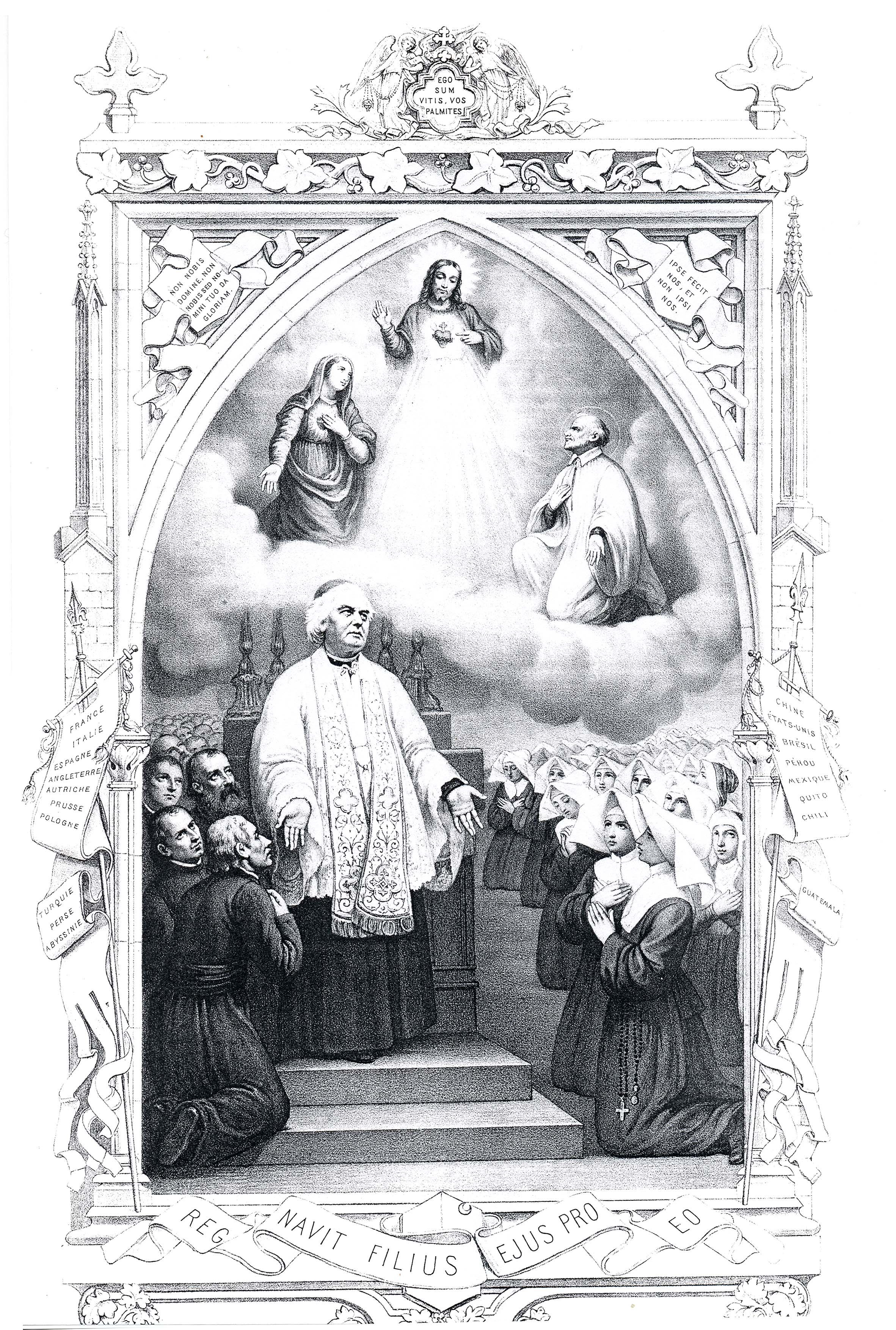 Latin text: His son reigned after him (Etienne/Vincent de Paul); Sacred Heart of Jesus, Immaculate Heart of Mary, Vincent de Paul above Copy in Vincentian archives, Paris