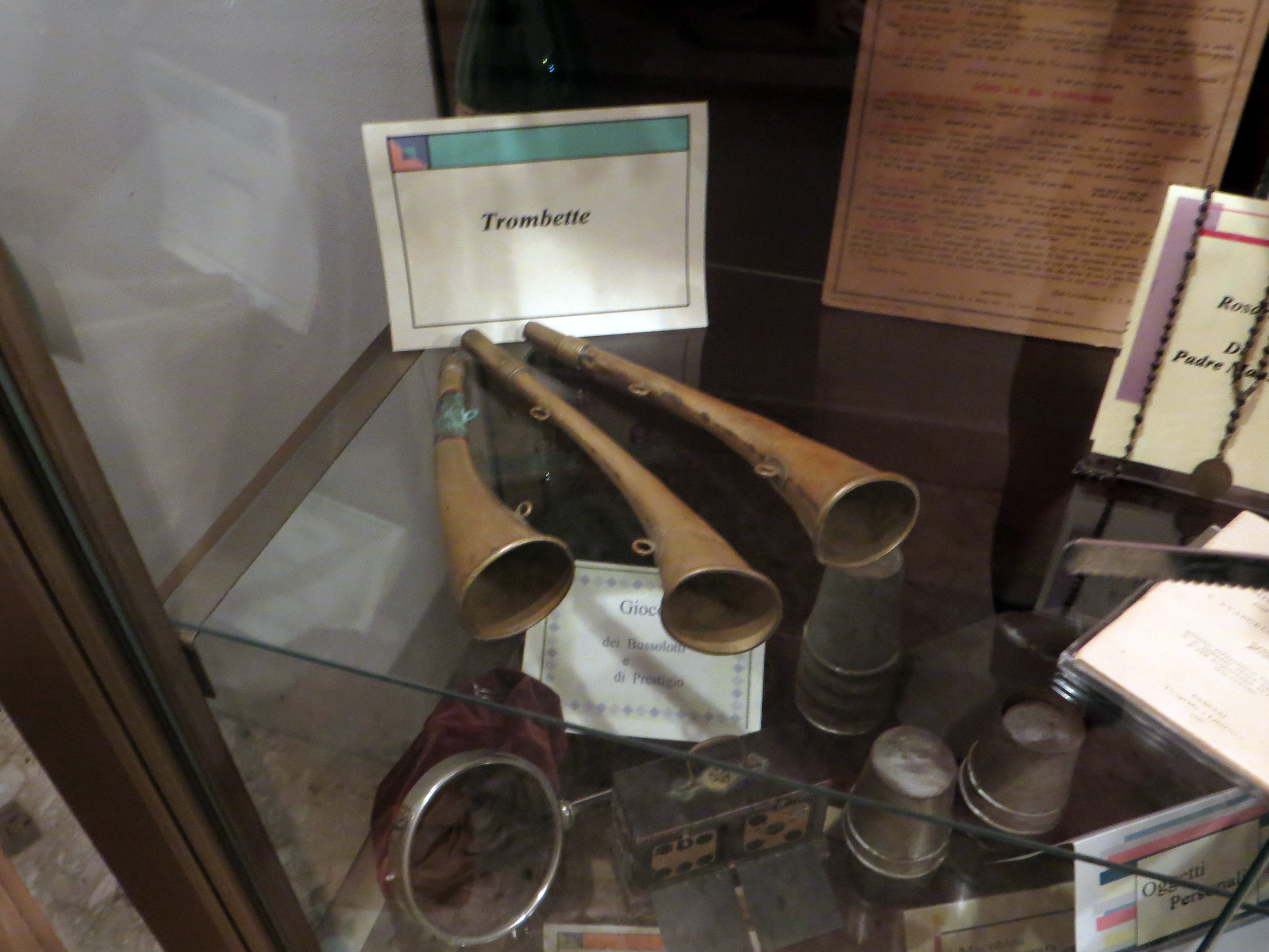 Trumpets Manzella used to summon children and others for instruction; In museum in mother house of Sisters of Gethsemane, Sassari
