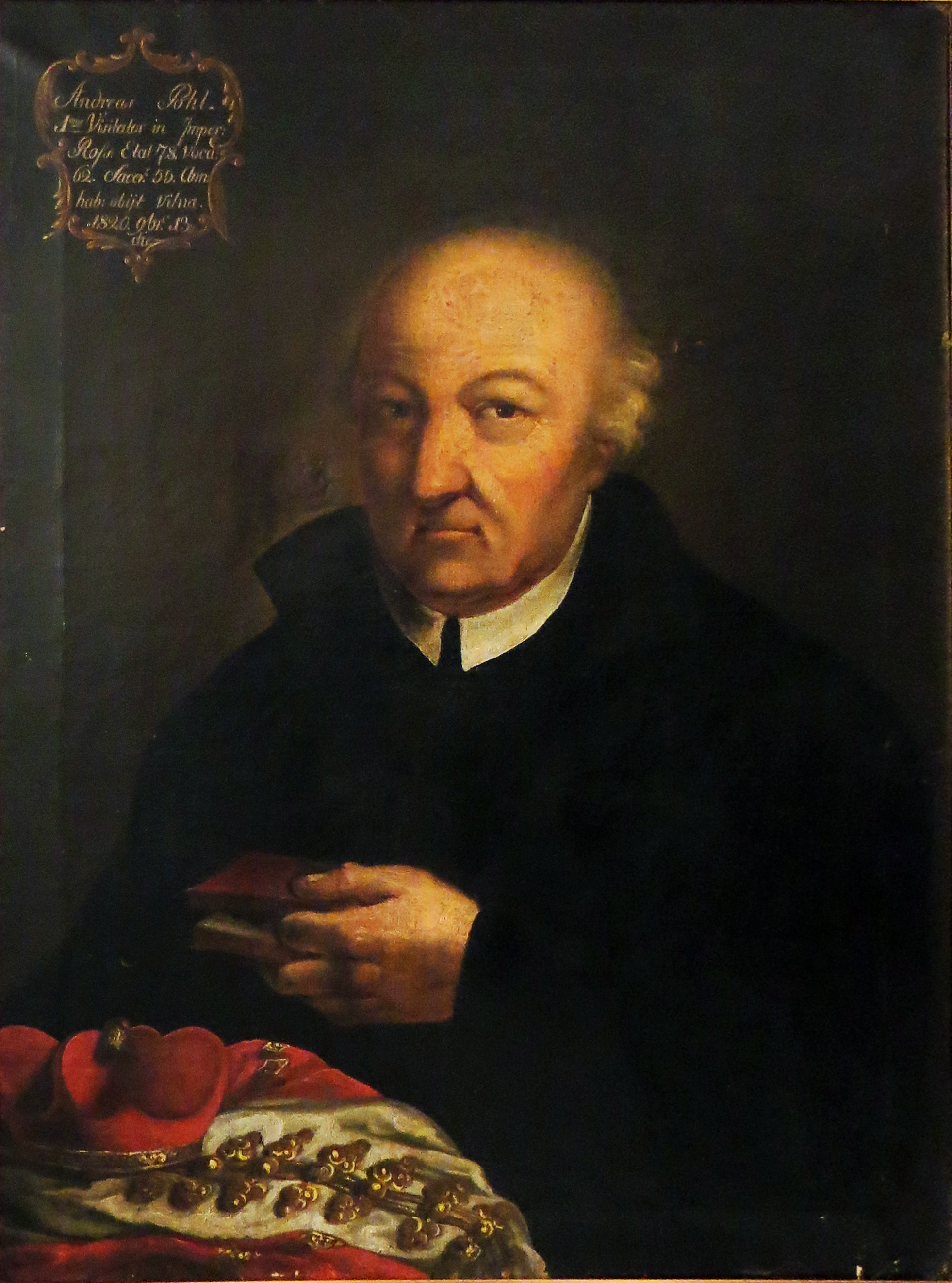 Died 1820 in Vlinius Shown with shoulder cape and biretta of a canon (perhaps of Vilnius) Original in CM house, Warsaw