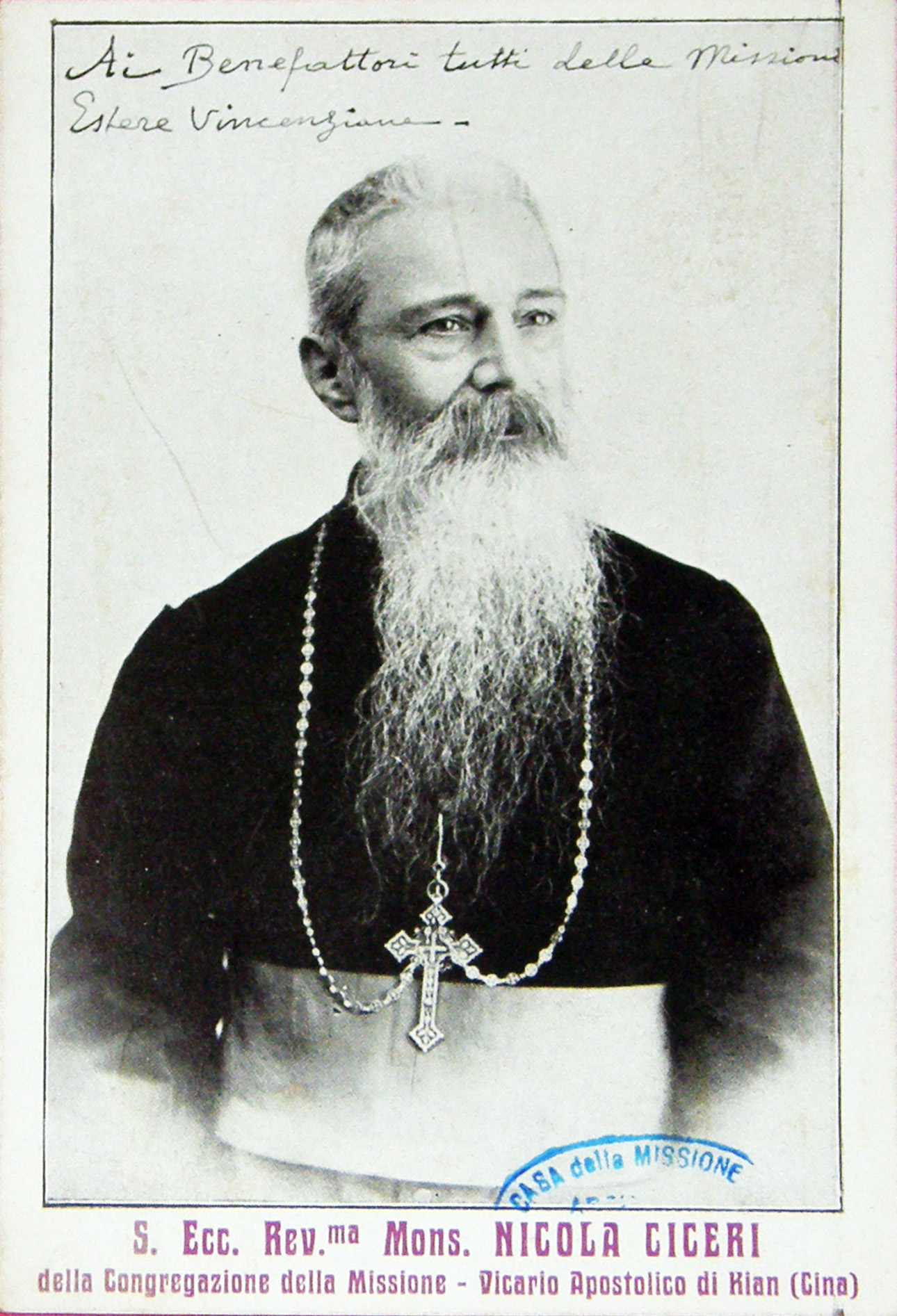 Card for "All benefactors of Missioni Estere Vincenziane," a mission magazine
