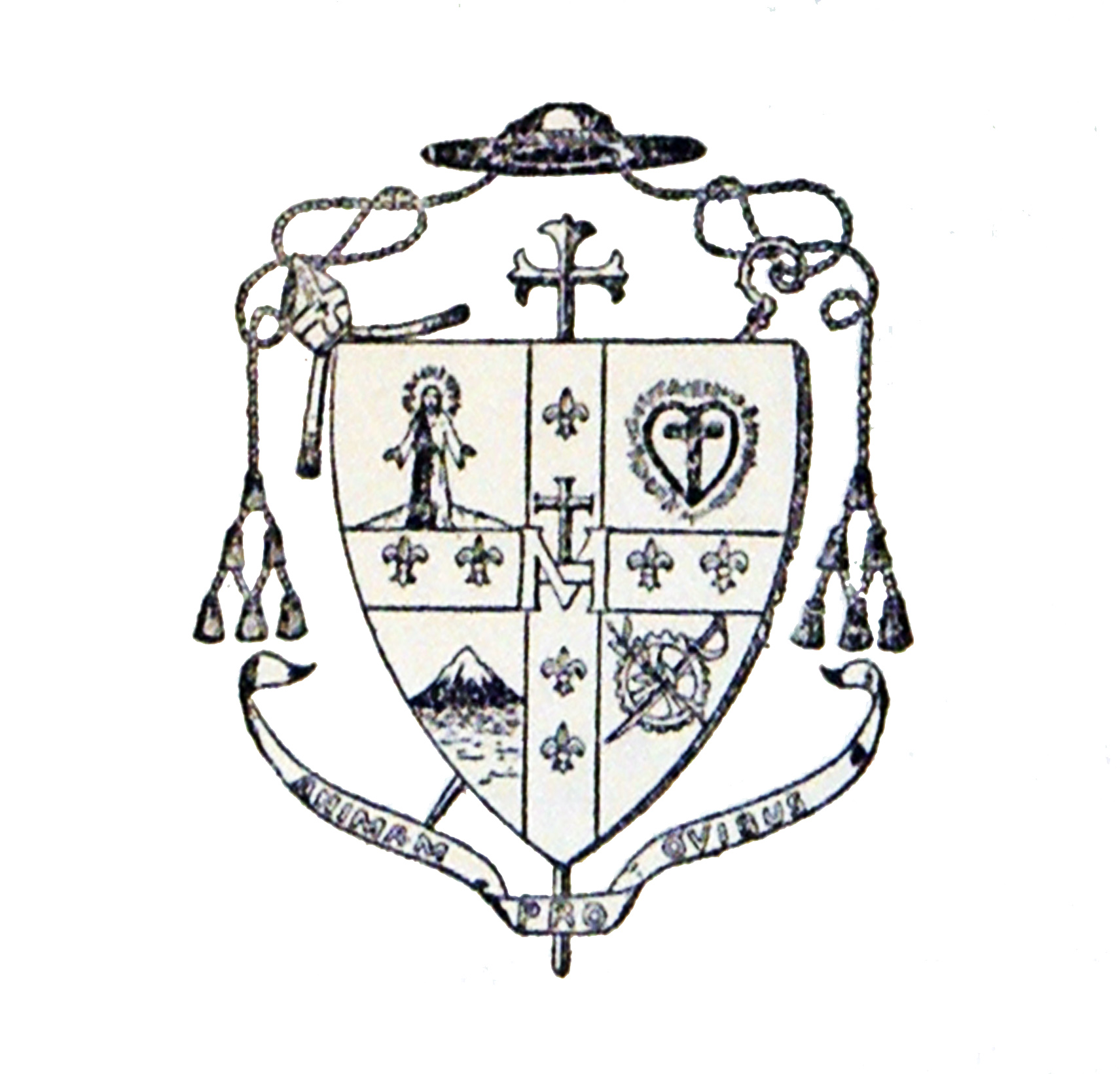 Motto: [Gives his] life for his sheep Elements of Vincentians, Daughters of Charity, Miraculous medal, Peruvian mountains, Fleur de lys From printed letterhead