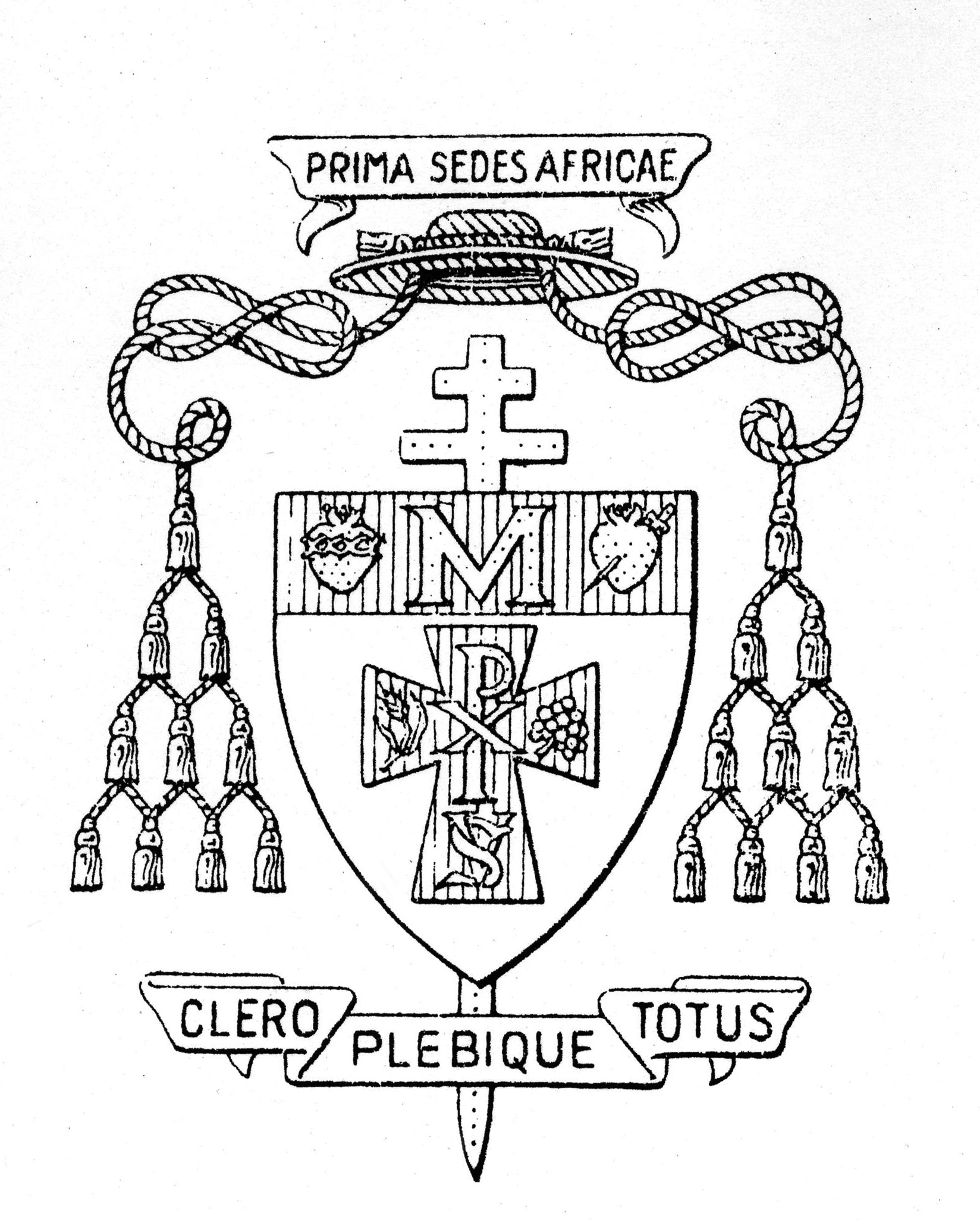 Motto: All for the clergy and people Above: First see of Africa SV monogram in the cross