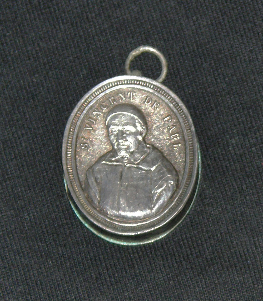 Cover, bust of Vincent de Paul, cassock, mantle, skullcap; for medal reliquary, with loop and ring