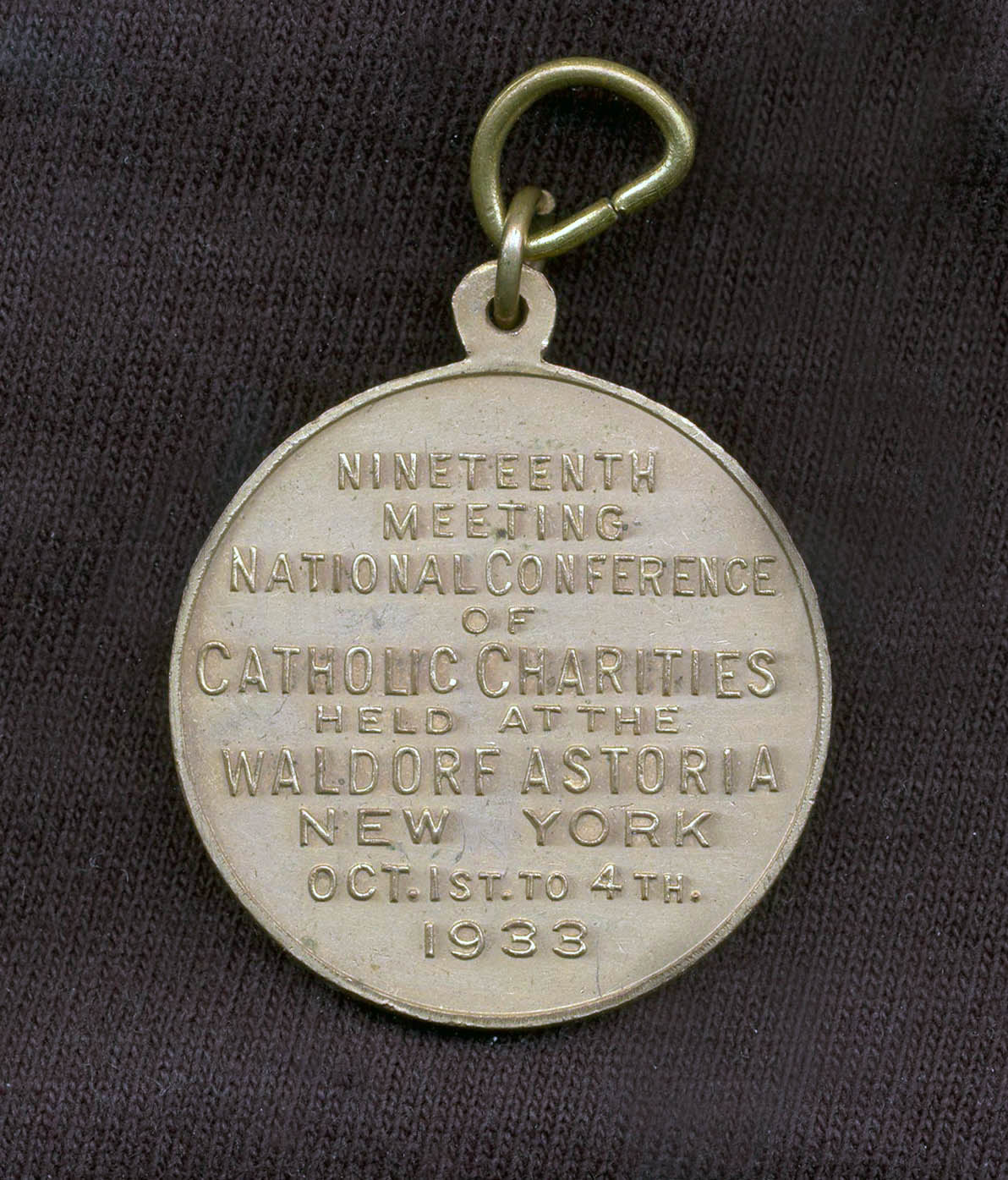 Reverse, National Conference of Catholic Charities, 1933, centennial of Society of St. Vincent de Paul