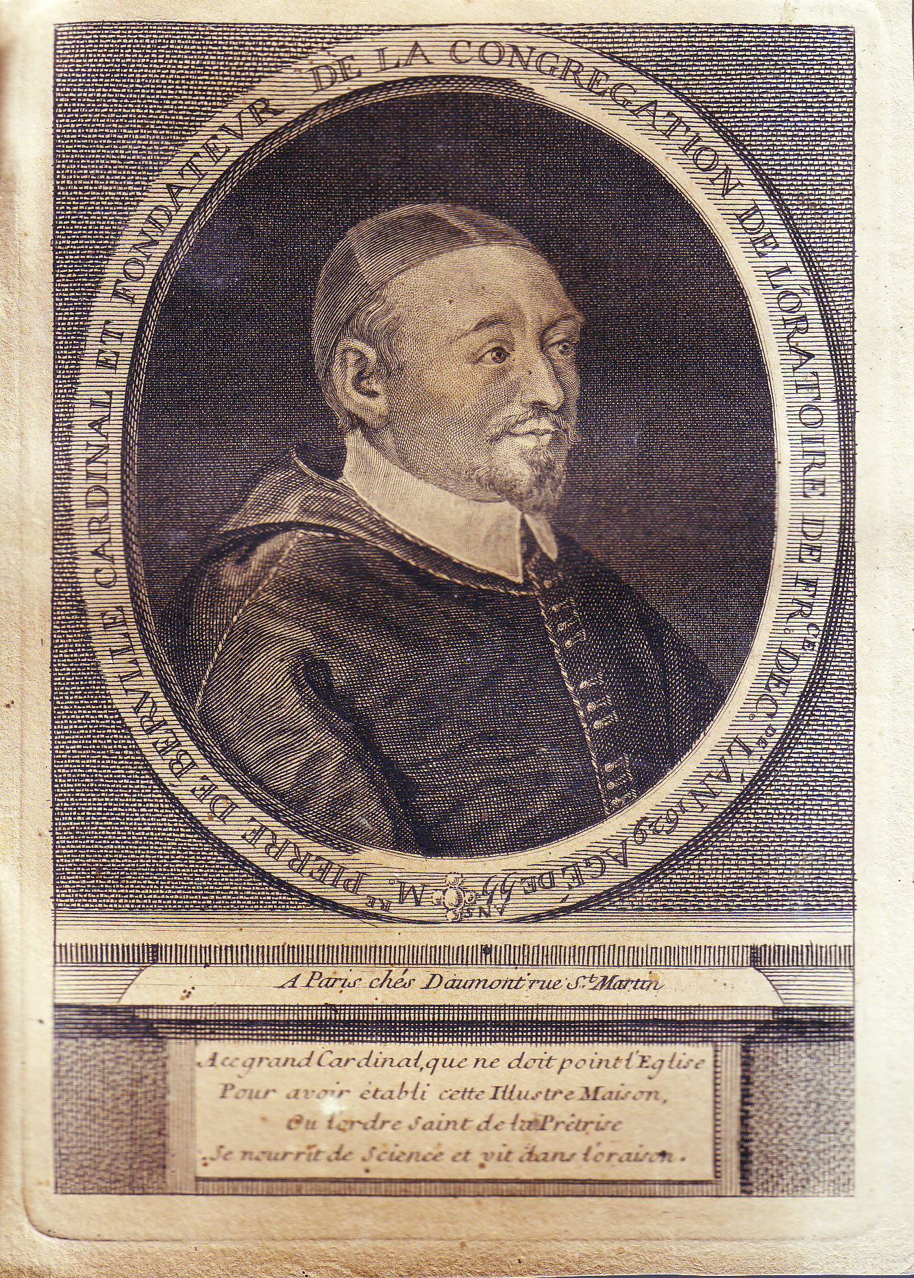 Oval text: "M. Pierre de Bérulle, cardinal and founder of the Congregation of the Oratory of France; died in 1629 at the age of 55." Made cardinal 1627