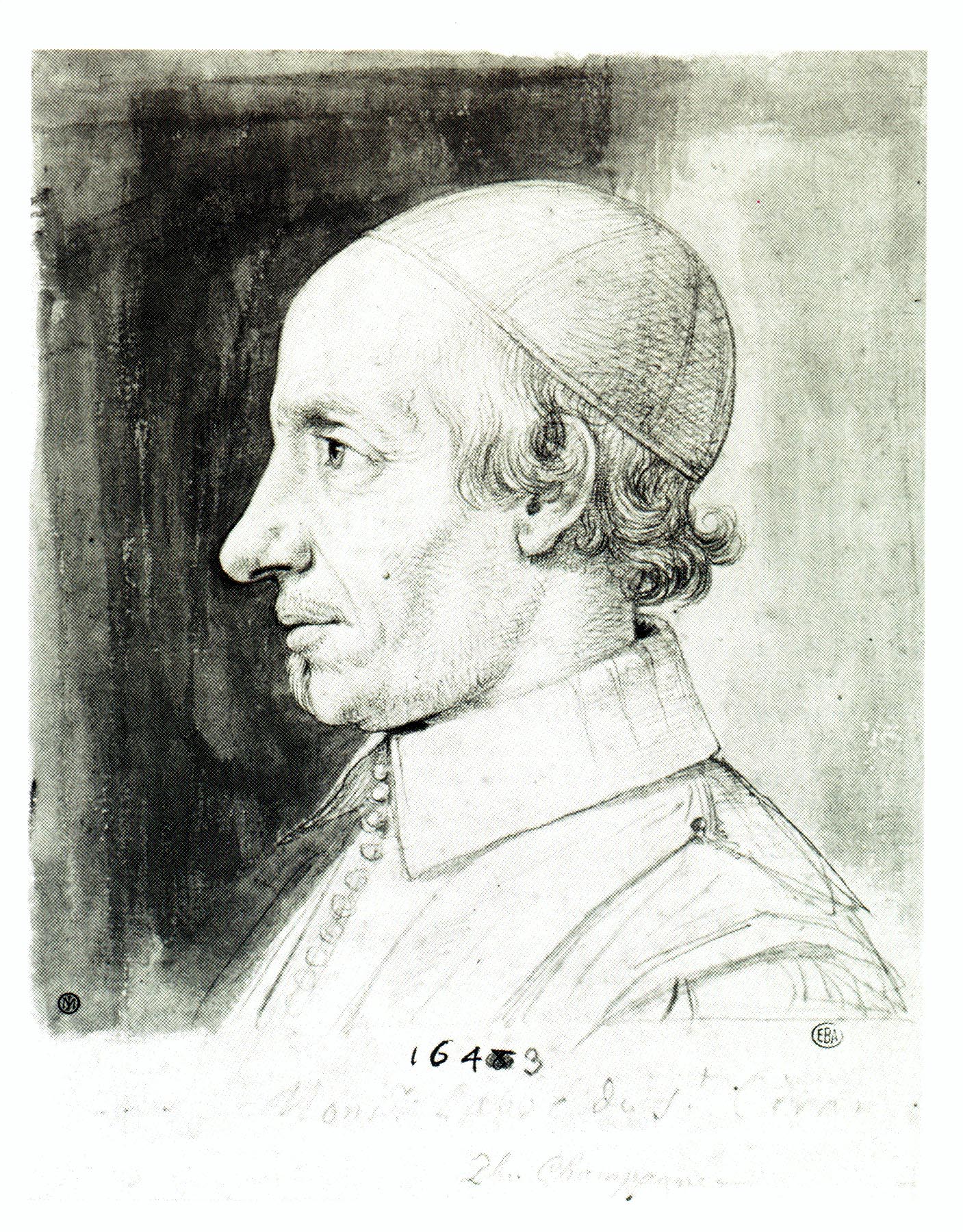 Martin de BARCOS, AbbŽ de Saint-Cyran Nenveu de Duvergier de Hauranne. par Ph. de Champaigne Membre actif du parti jansŽniste. Controversiste violent d'Abelly. Lavis, mine de plomb. 234 x 180 (1643) ƒcole des Beaux-Arts de Paris,