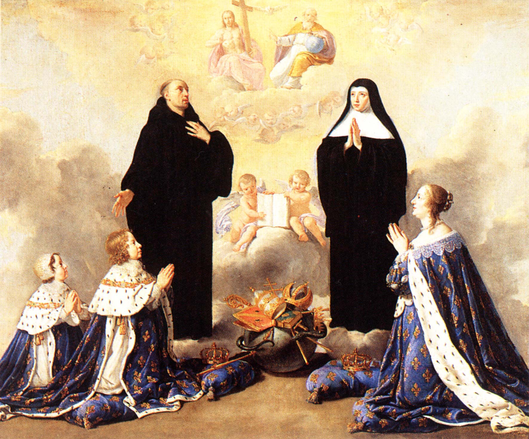 WIth sons Louis and Philippe, with Benedictine monk and nun