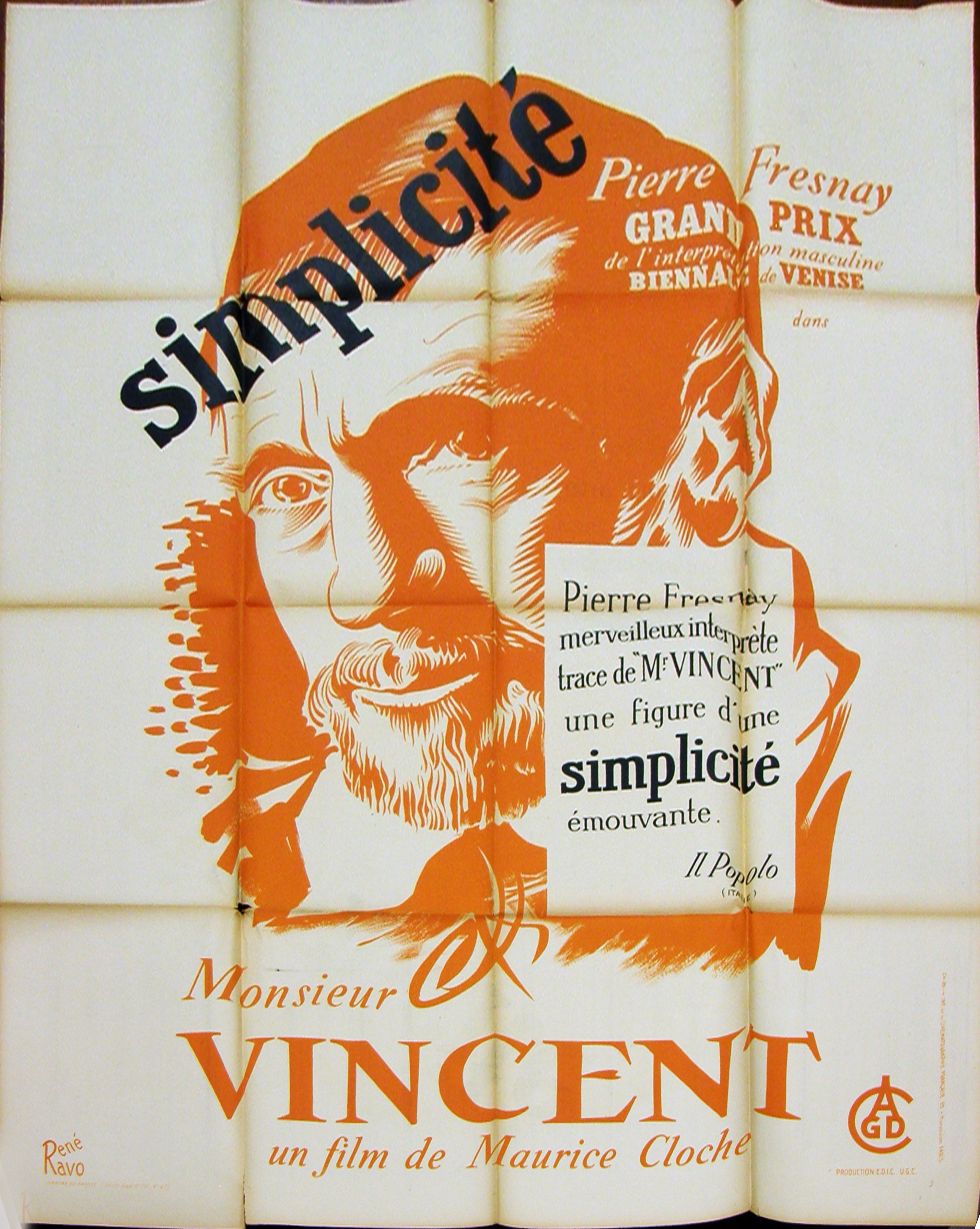 "Pierre Fresnay, a marvelous interpreter, traces a figure of moving simplicity in Monsieur Vincent" -- Original in Vincentian archives, Paris