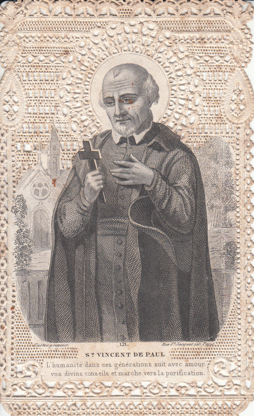 SVdP: cassock, mantle, hat under left arm, no skull cap