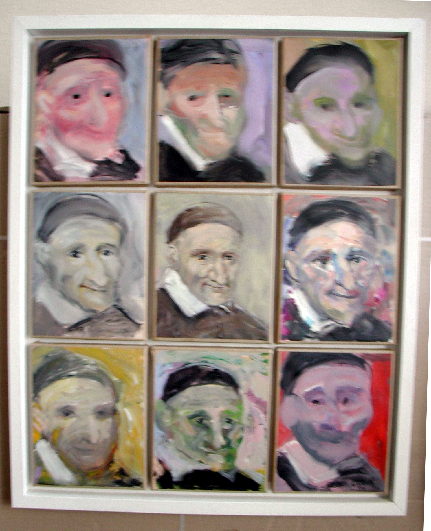 Framed, nine heads of Vincent de Paul in various styles; location of original unknown