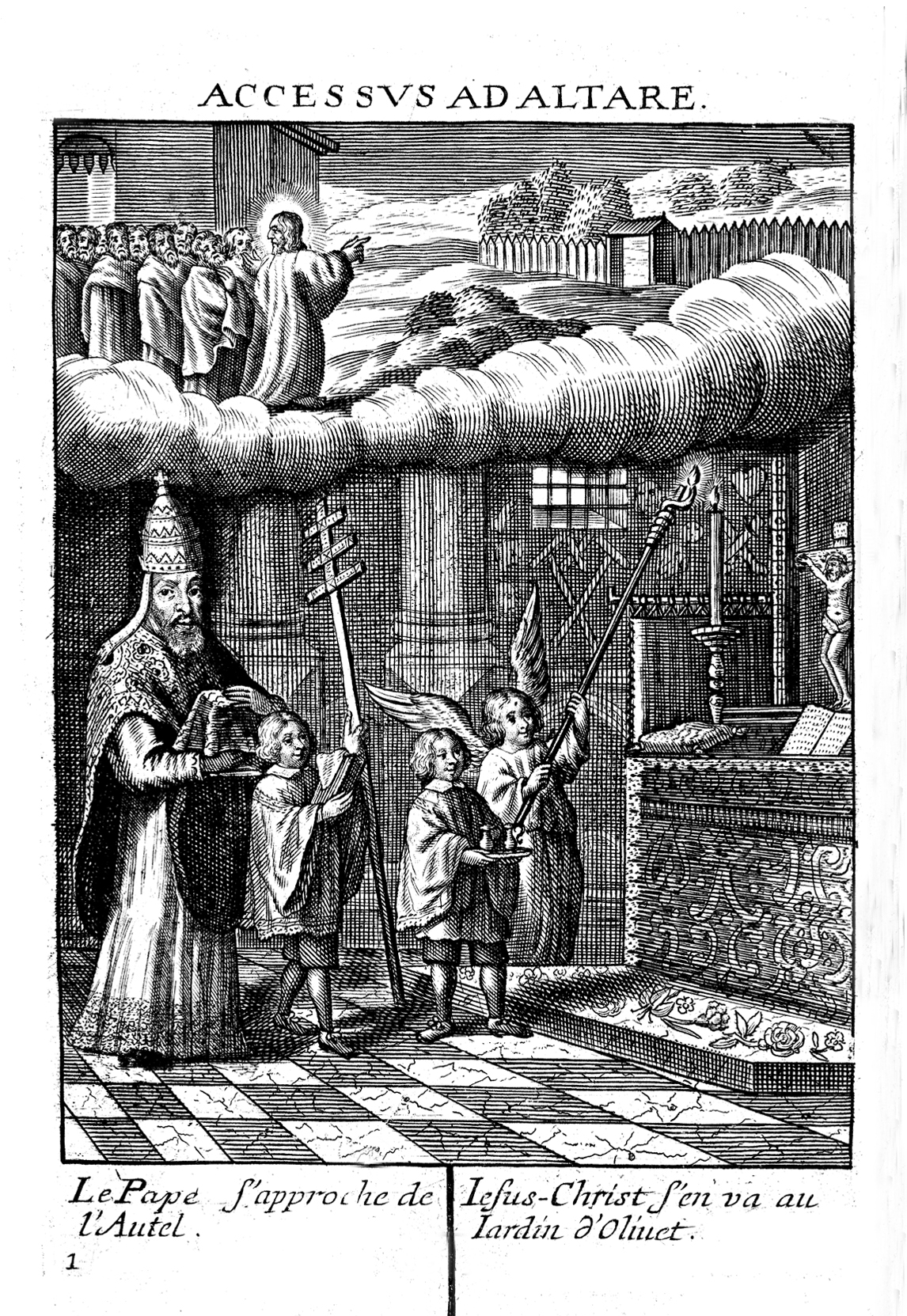 Second edition. Showing a bearded pope approaching the altar for a low Mass.