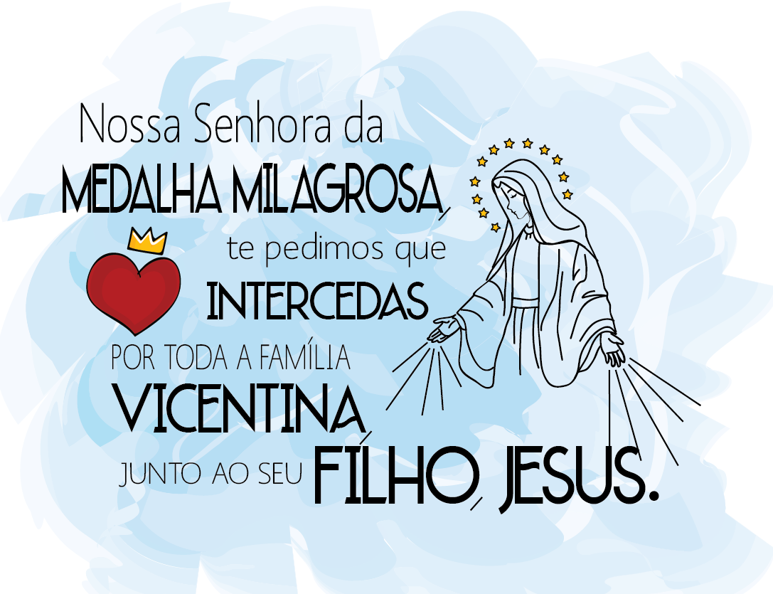 Text: Our Lady of the Miraculous Medal, we beg you to intercede for the entire Vincentian Family together with your son, Jesus