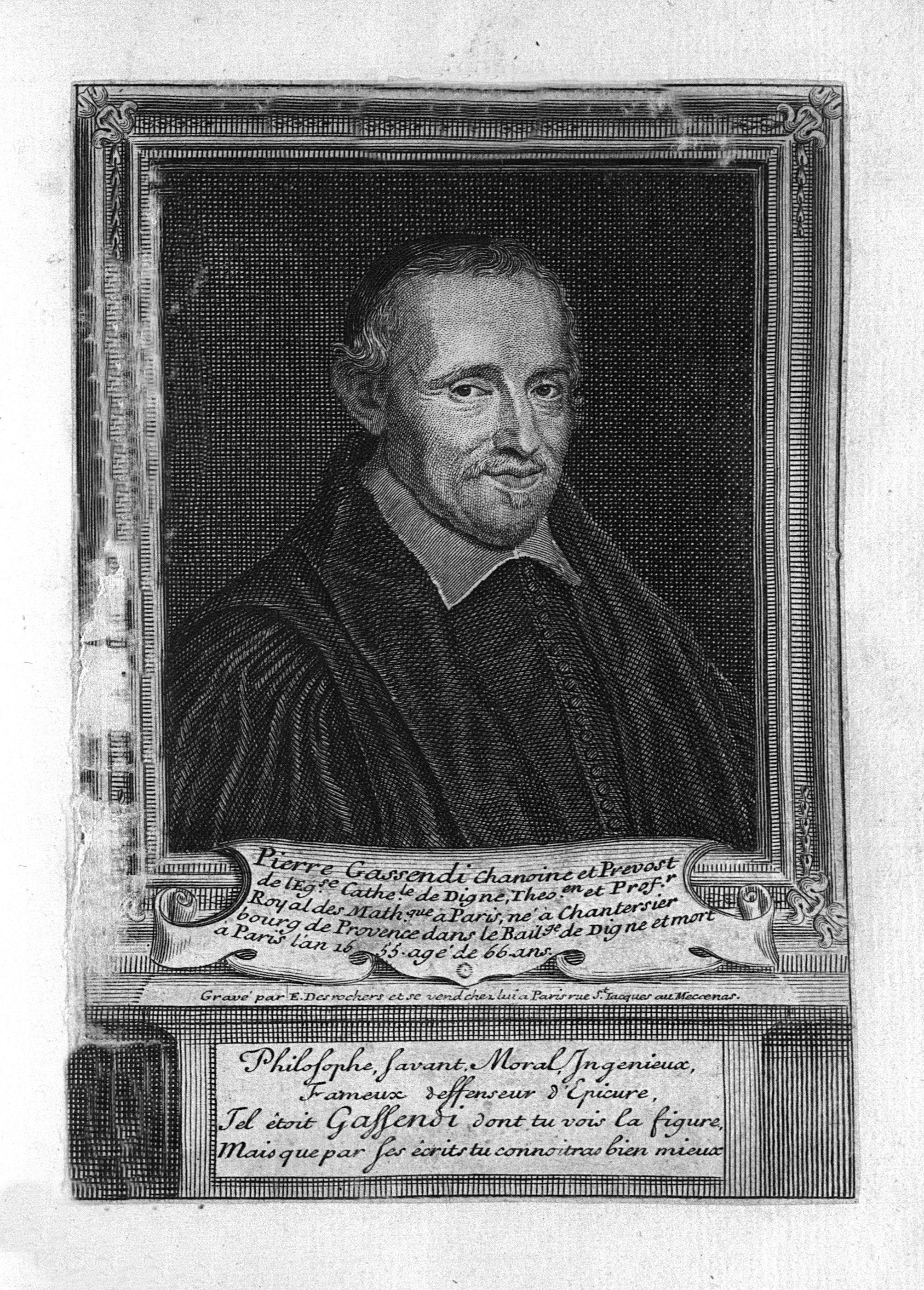 Text: Philosopher, intellectual, moral, ingenious, famous defender of Epicurus. This was the Gassendi whose face you see, but you will know him much better through his writings.