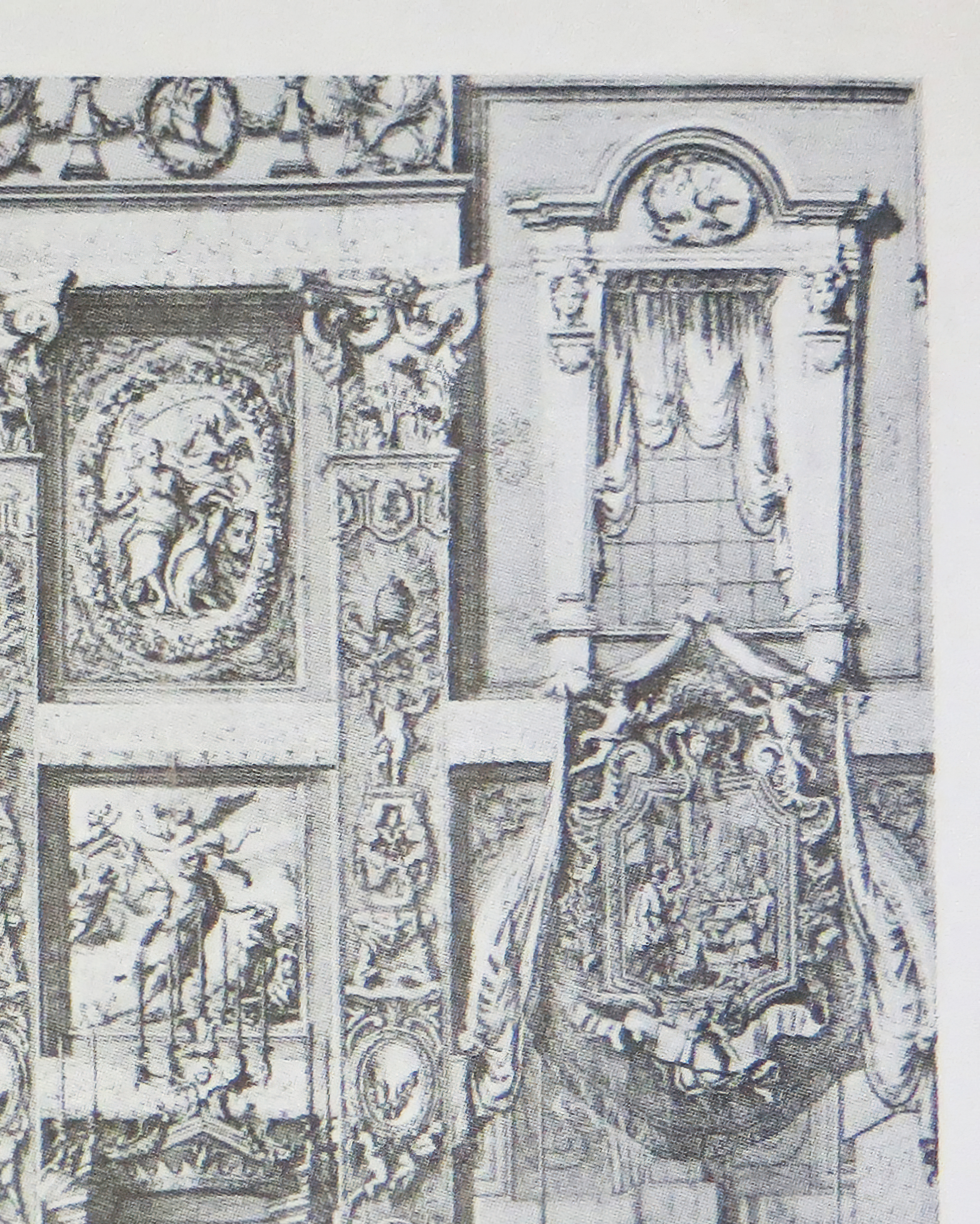 Oval and square paintings depict evangelist (Mark) and apostle (?)