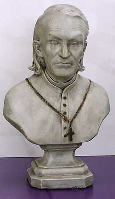 Plaster bust, added cross and chain; internet image