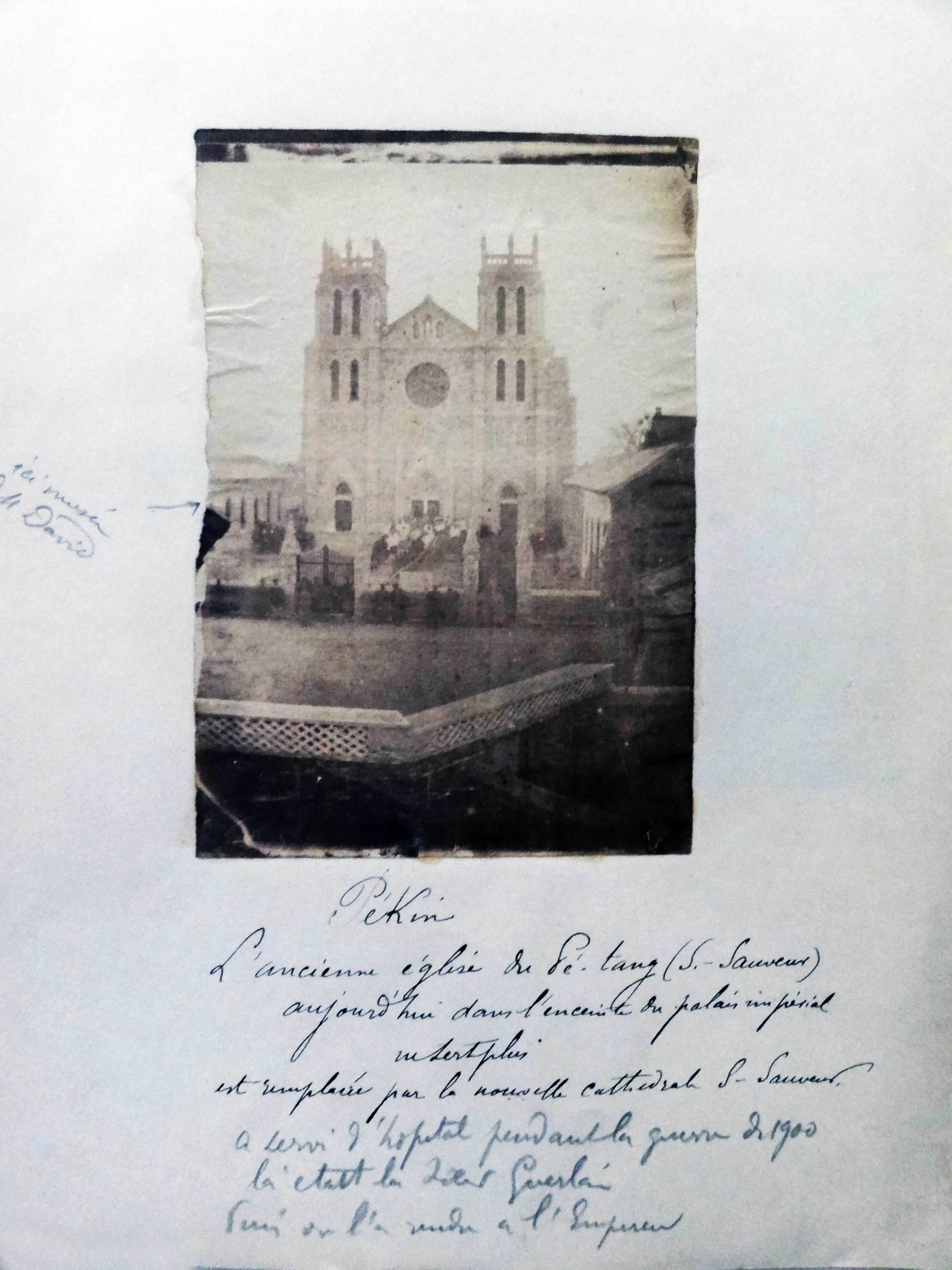 Text: former cathedral, today in the imperial compound, no longer in use; replaced by new cathedral. Used as hospital in war of 1900; sold to emperor