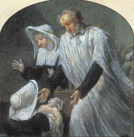 Vincent de Paul rescuing infant, handed to Daughters of Charity