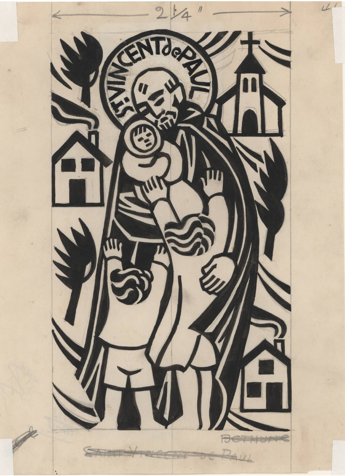 Original artist's drawing, pencil marks visible; internet image; perhaps never printed as a holy card