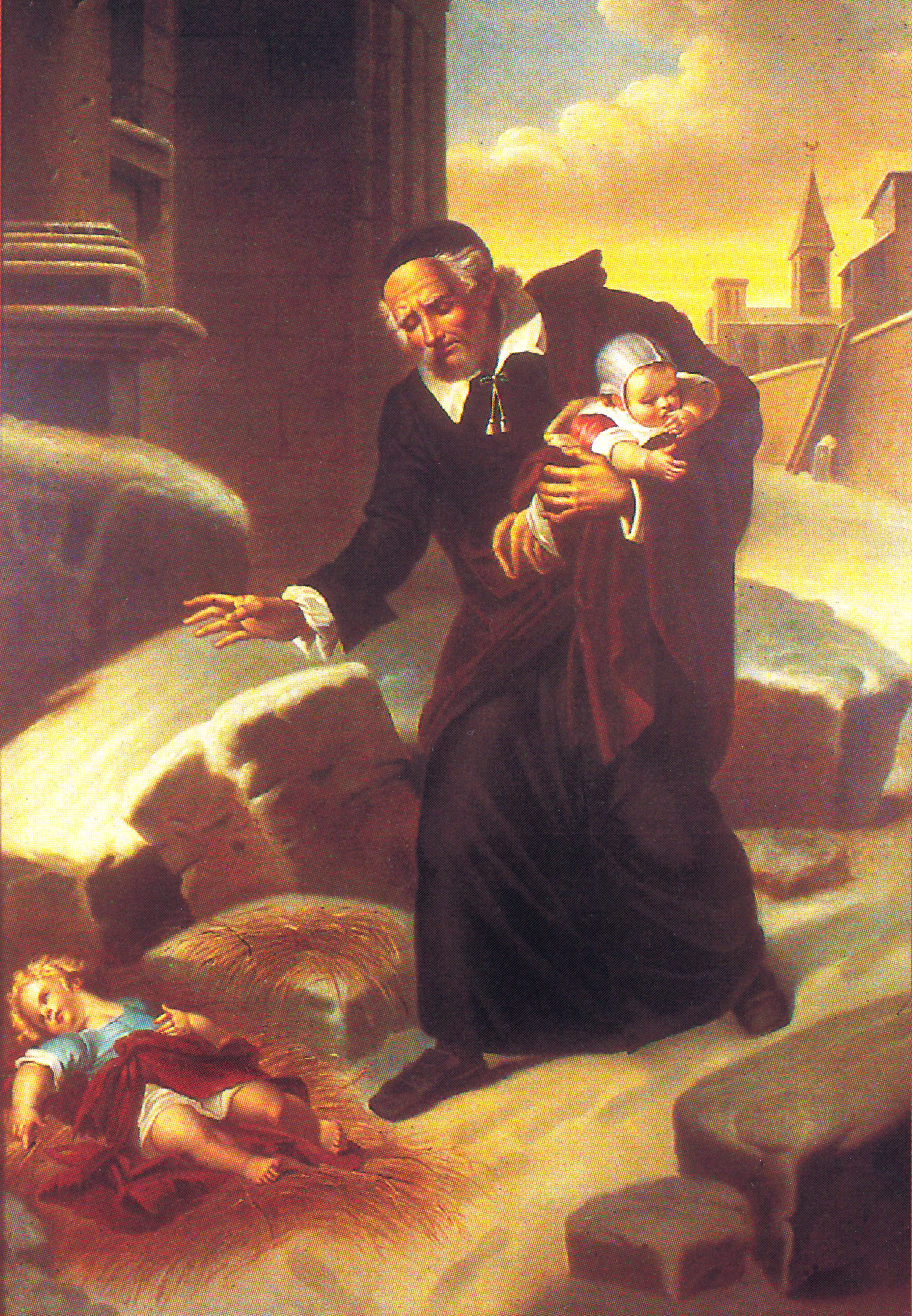 Vincent de Paul collecting foundlings; figure of woman in background missing