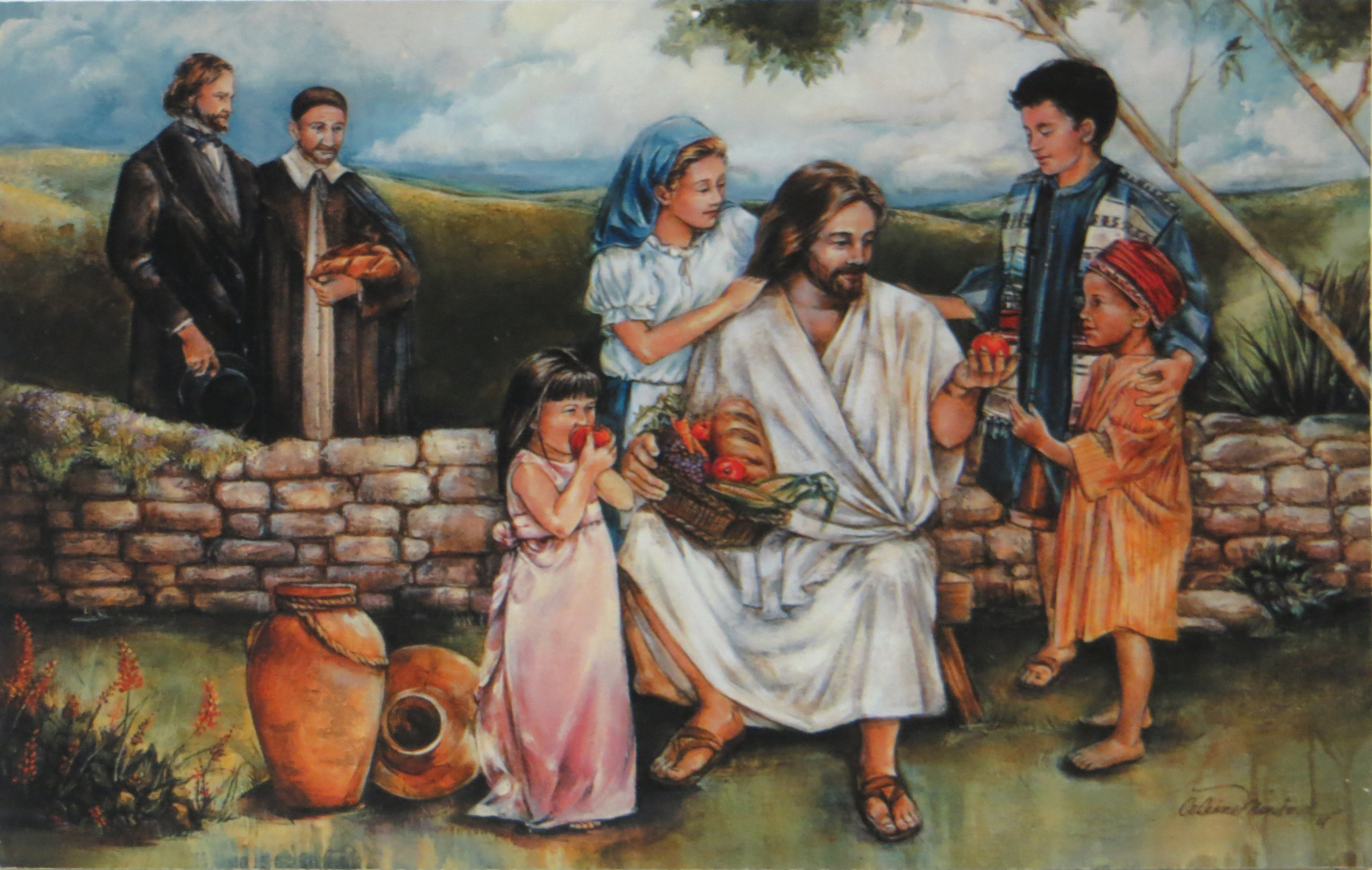 Jesus distributing food