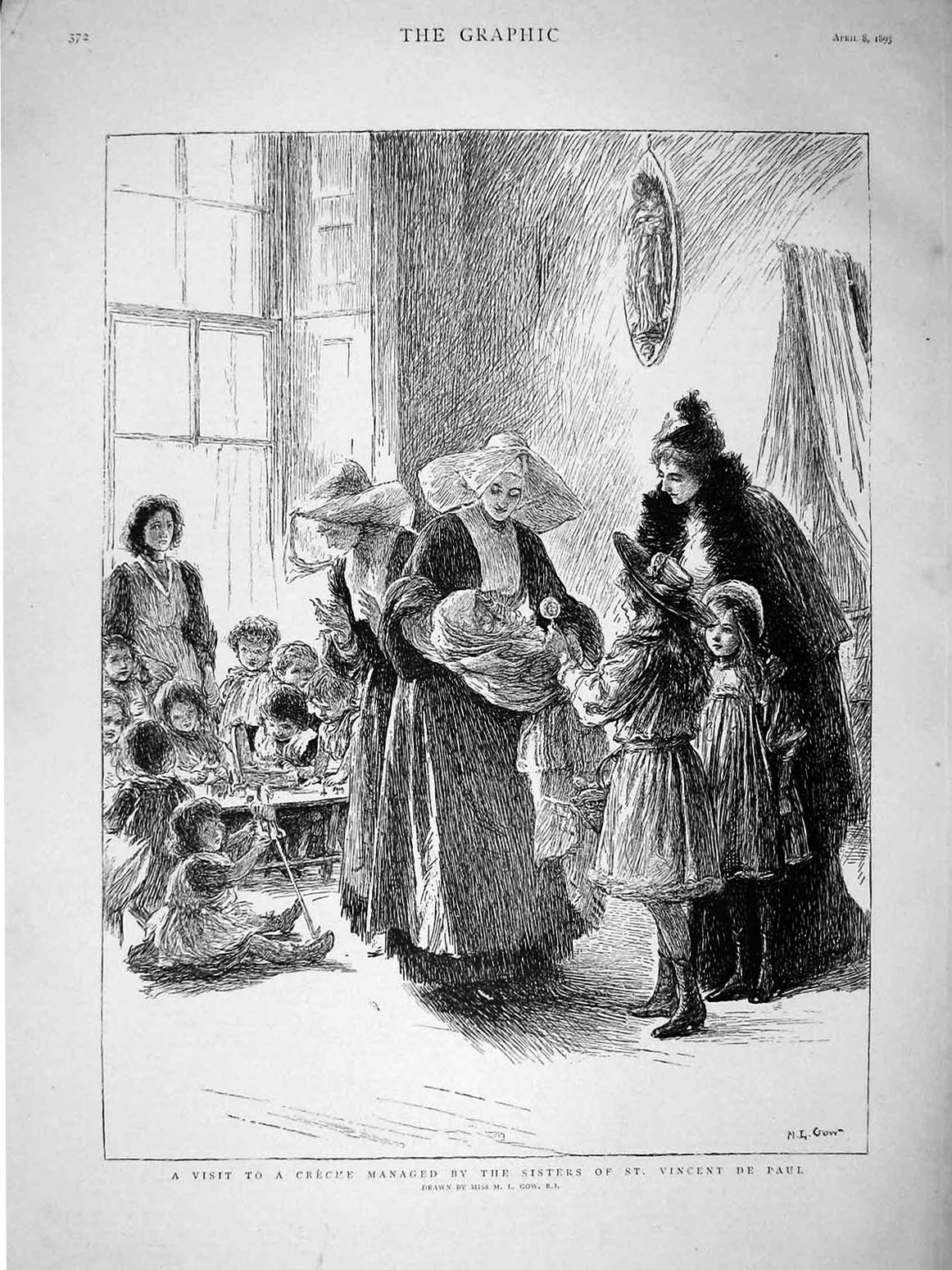 A Visit to a Creche managed by the Sisters of St. Vincent de Paul, drawn by Miss M. L. Gow