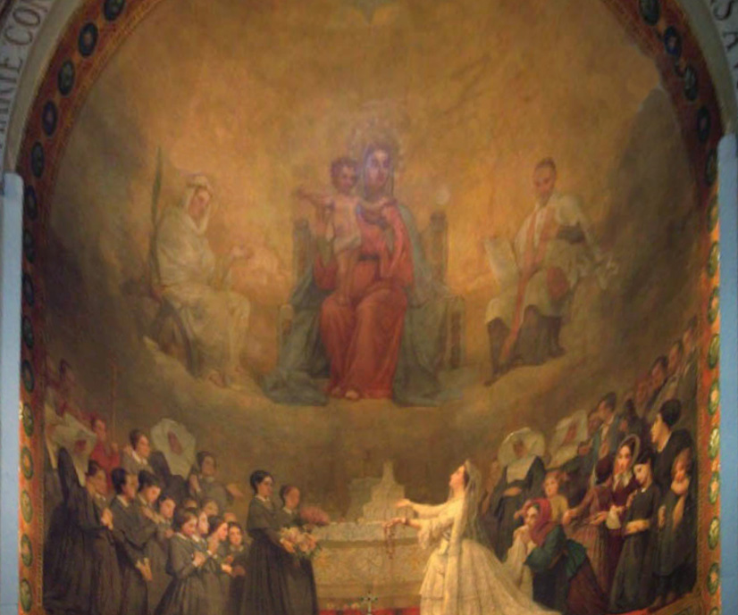 Daughters of Charity, orphan girls, young men, SVdP with surplice and stole, in apse, prob. with Ste. Genevieve. Artist: F-J Barrias; internet image