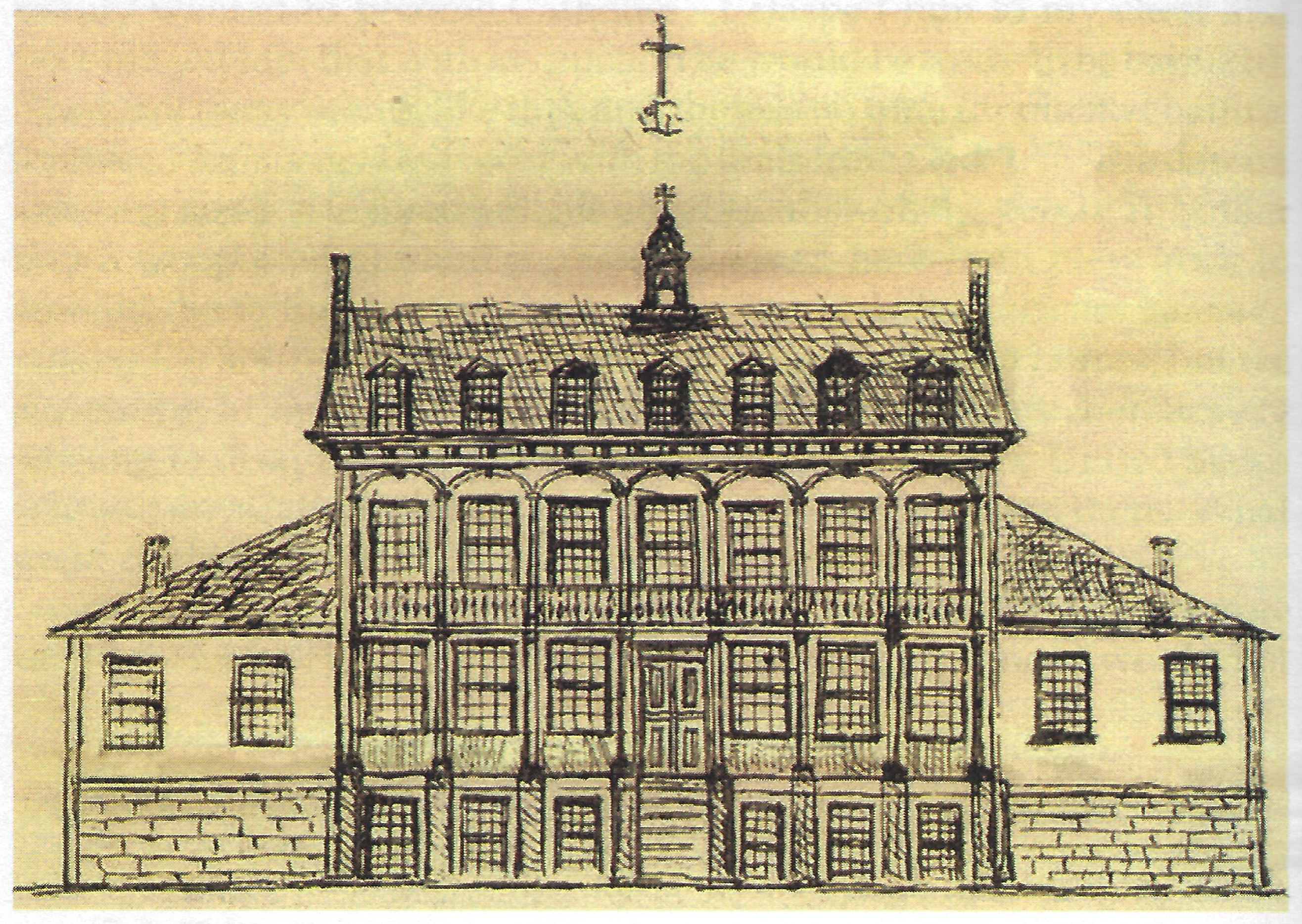 Preliminary drawing of brick building; original Old College followed the design, but in wood