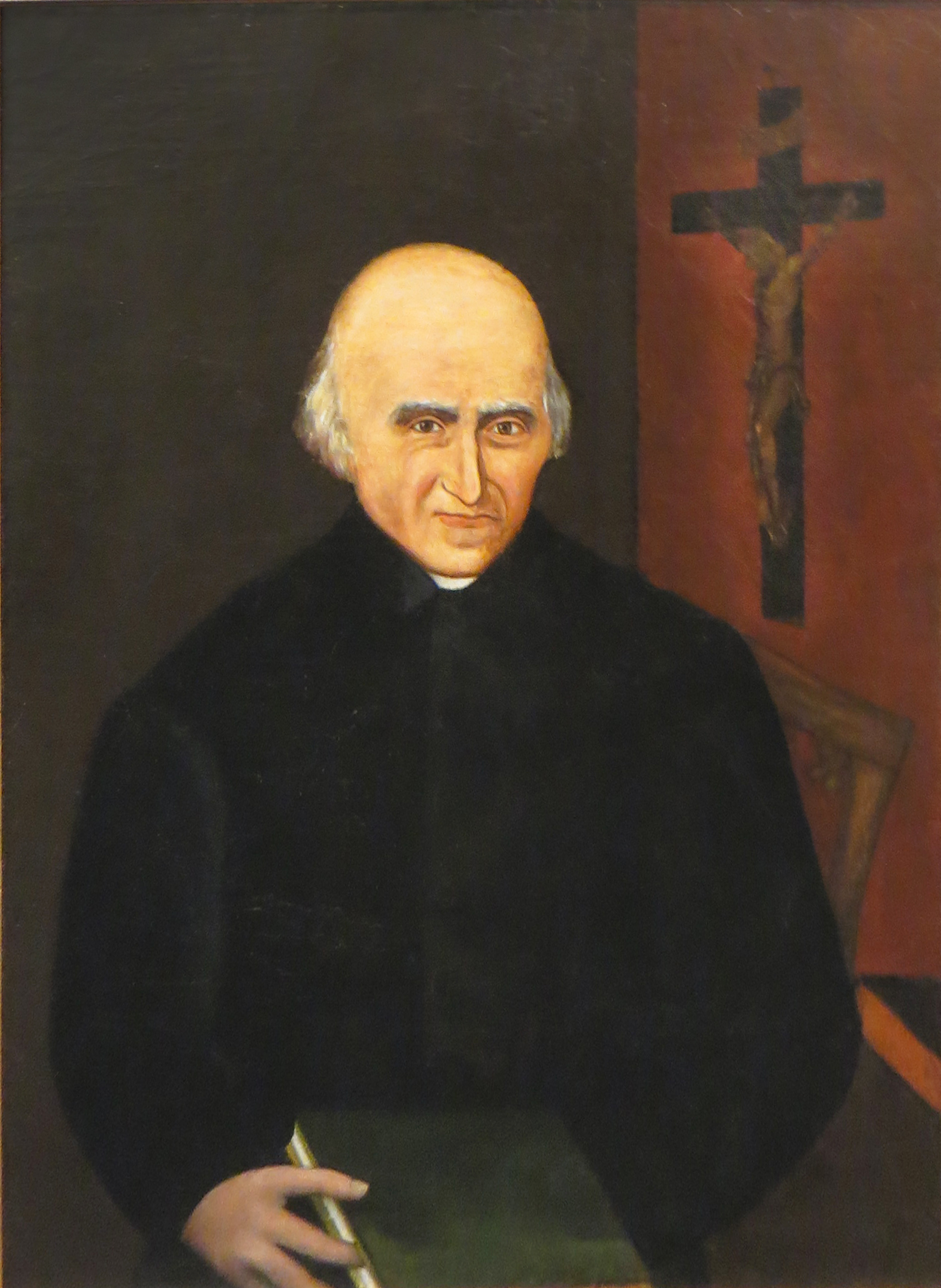Text on label: Ven. Father Donatus Olivier. Pastor of Prairie de Rocher, Ill. Becoming stone blind and unable to care [for] his flock, resigned his parish, came to old S. Mary's Seminary at the Barrens in 1850, where a while afterwards in the odor of sanctity at the rip age of 90 and more he passed to his Lord.
