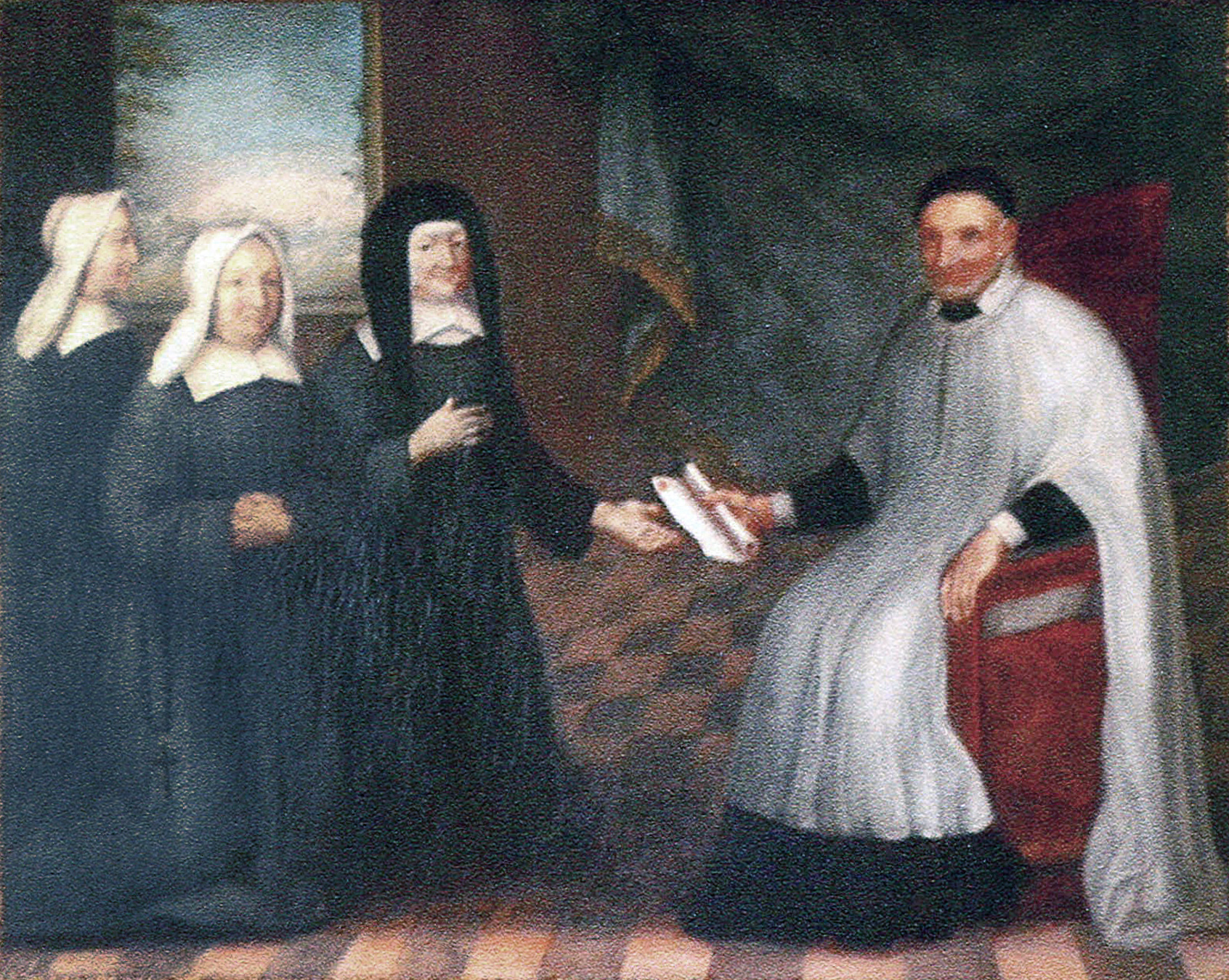 Vincent de Paul gives Rules to Louise de Marillac, two Sisters