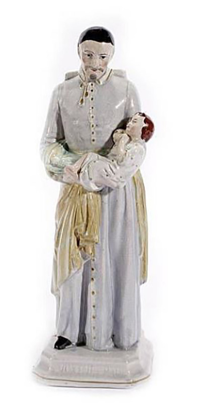 VdP, wearing grey ferraiolo cape; holding infant