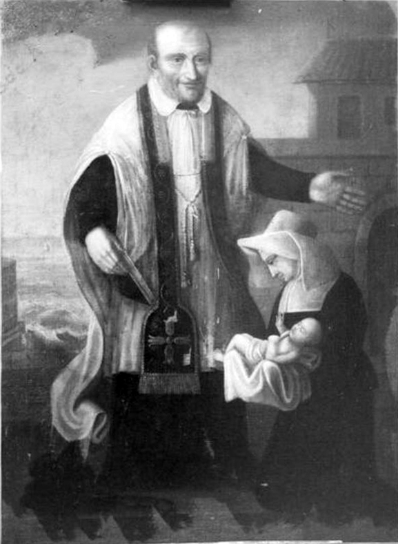 SVdP and a Daughter of Charity, holding an infant