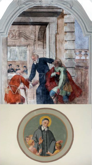 Top: VdP bringing the poor to his table; bottom, VdP teaching children