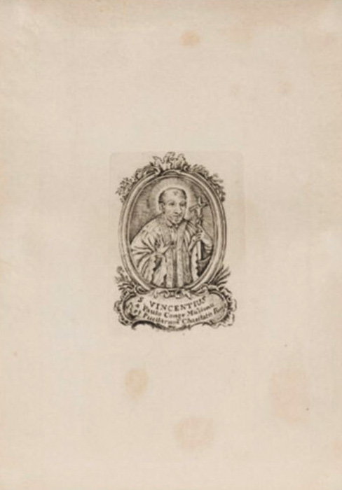 VdP holding crucifix; in surplice, stole, no skullcap; Latin text