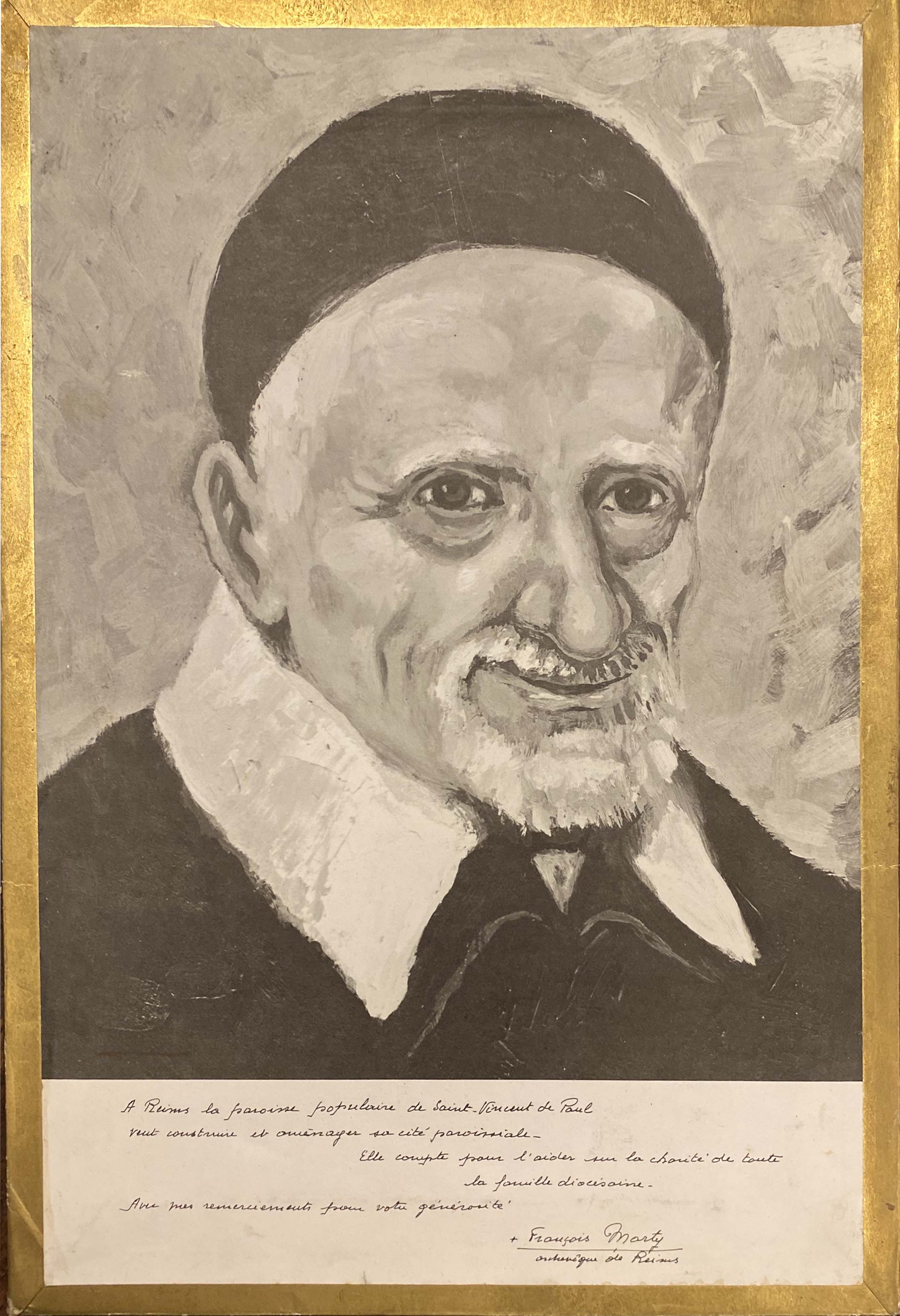 Text: The peoples' parish of SVdP in Reims wishes to build and furnish its parish site. It counts on the charity of the entire diocesan family to help this. With my thanks for your generosity." (Unsigned, undated)