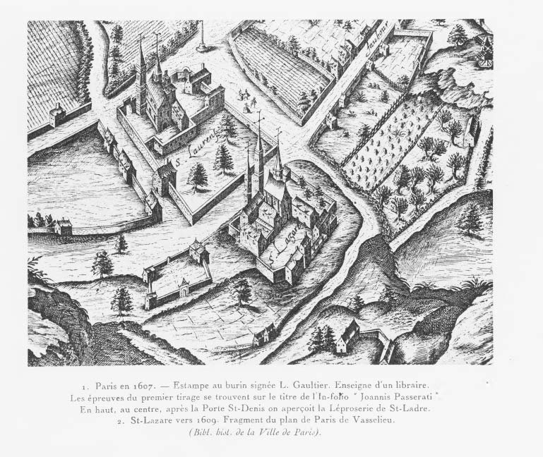 Paris, St. Lazare, early map 04, dated 1609;. prison is separated at left.JPG