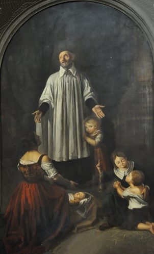 Parish church; VdP with woman, four children