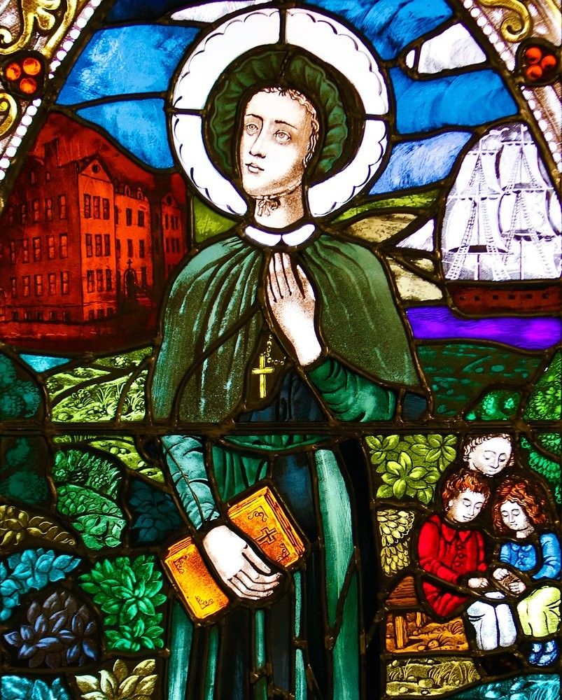 Seton with children, school building, ship