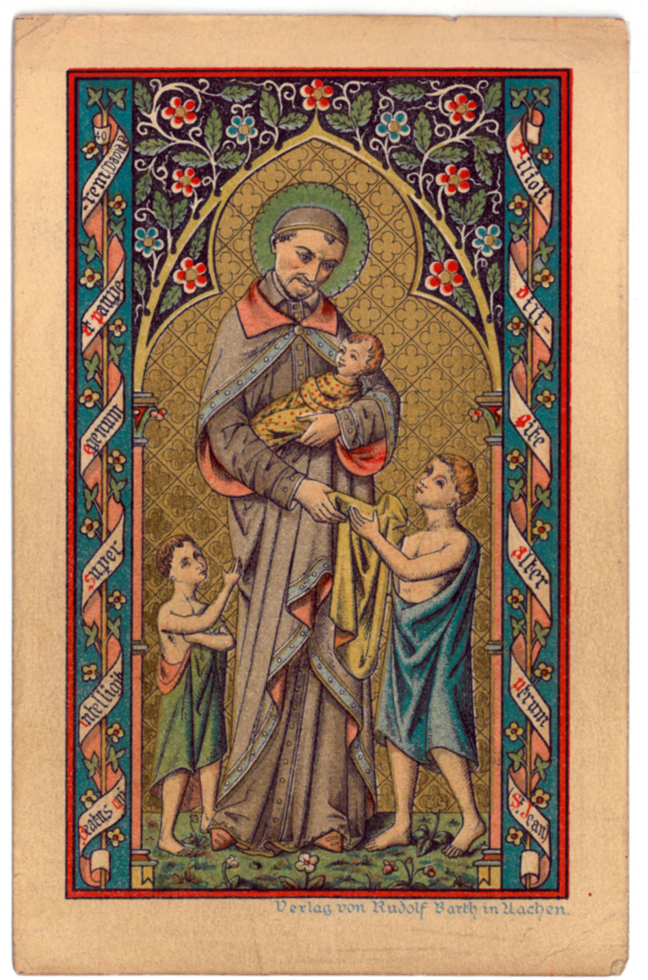Texts: (Left): Blessed the one who shows understanding to the poor and needy; (Right): Little children, love one another. St. John