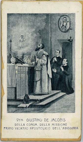 Holy card; CMs kneeling; Justin having a vision