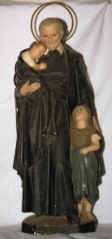No skullcap; two children; Miraculous Medal; metal halo