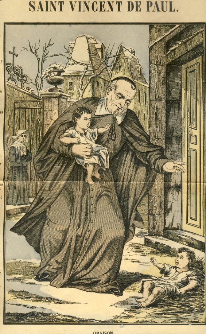 Saving a foundling; Daughter of Charity in background