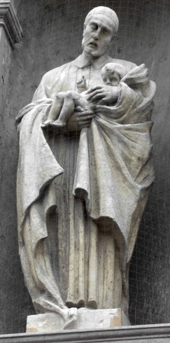 One child; outdoor statue; location not given