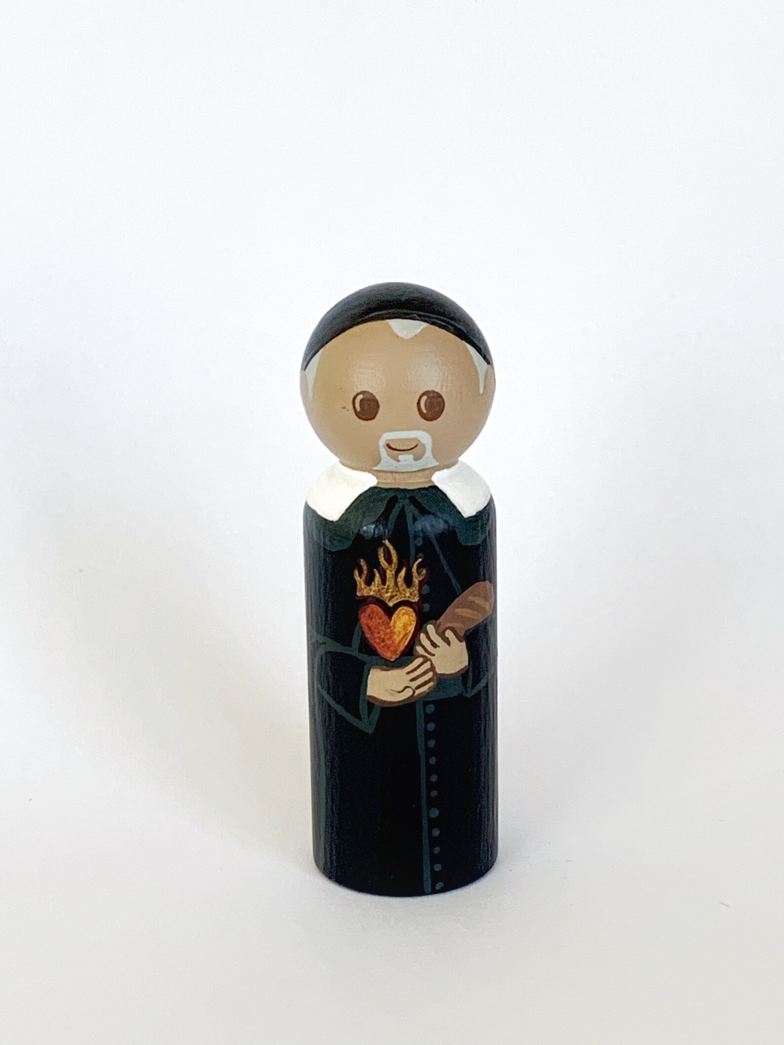 Holding burning heart of charity, bread