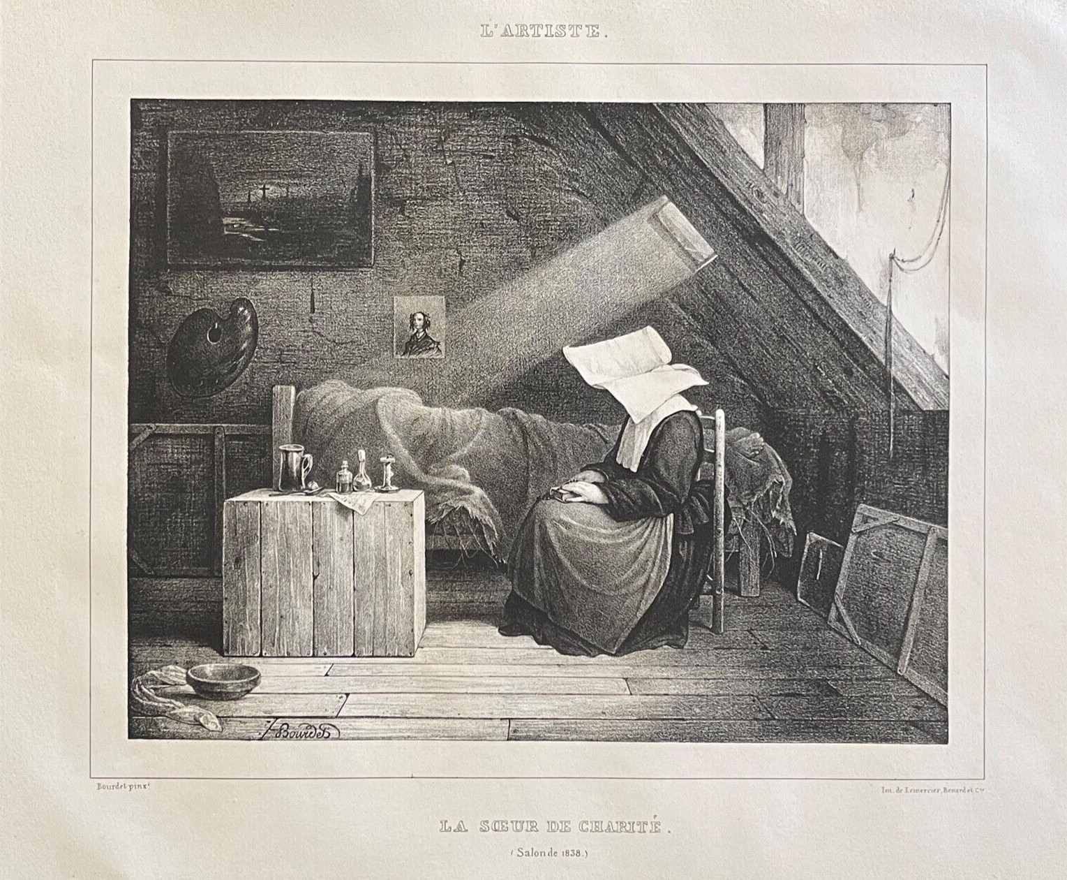 Sister at bedside of sick person, by Bourdet