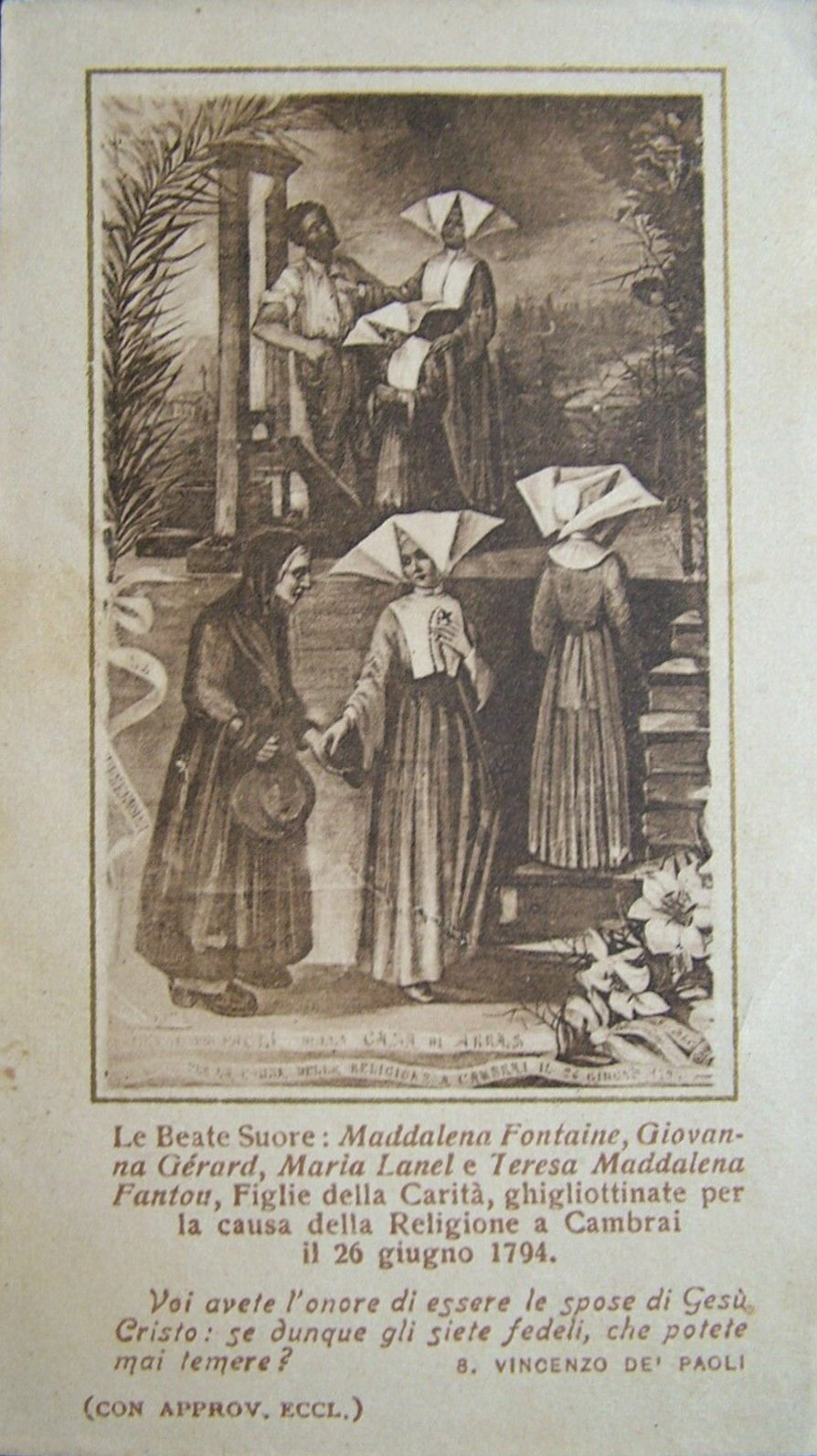 Text: The Blessed Sisters [named] guillotined for the cause of religion at Cambrai, 26 June 1794